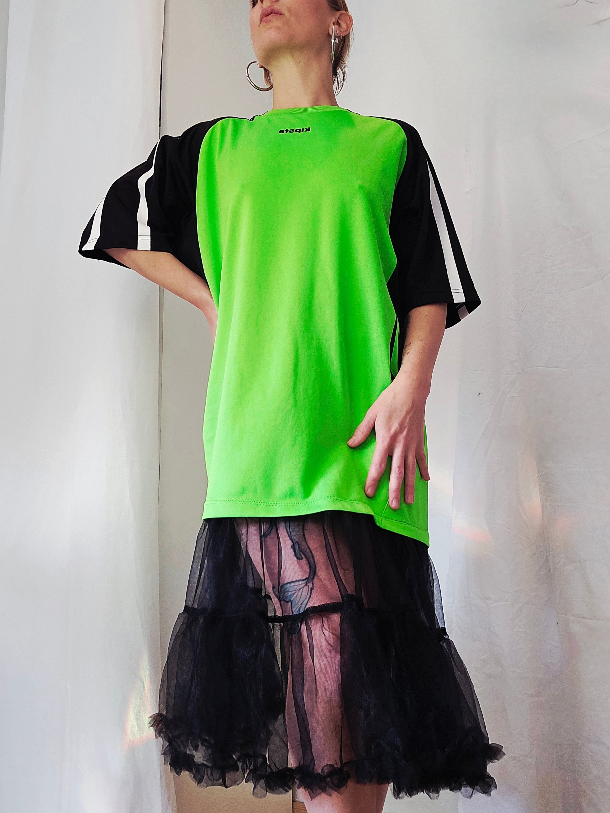Pour un look signature décalé, optez pour cette vareuse de sport, réhaussée d'un tutu noir transparent et de notre logo emblématique floqué au dos. Une allure chic et décontractée pour se pavaner en toute occasion.