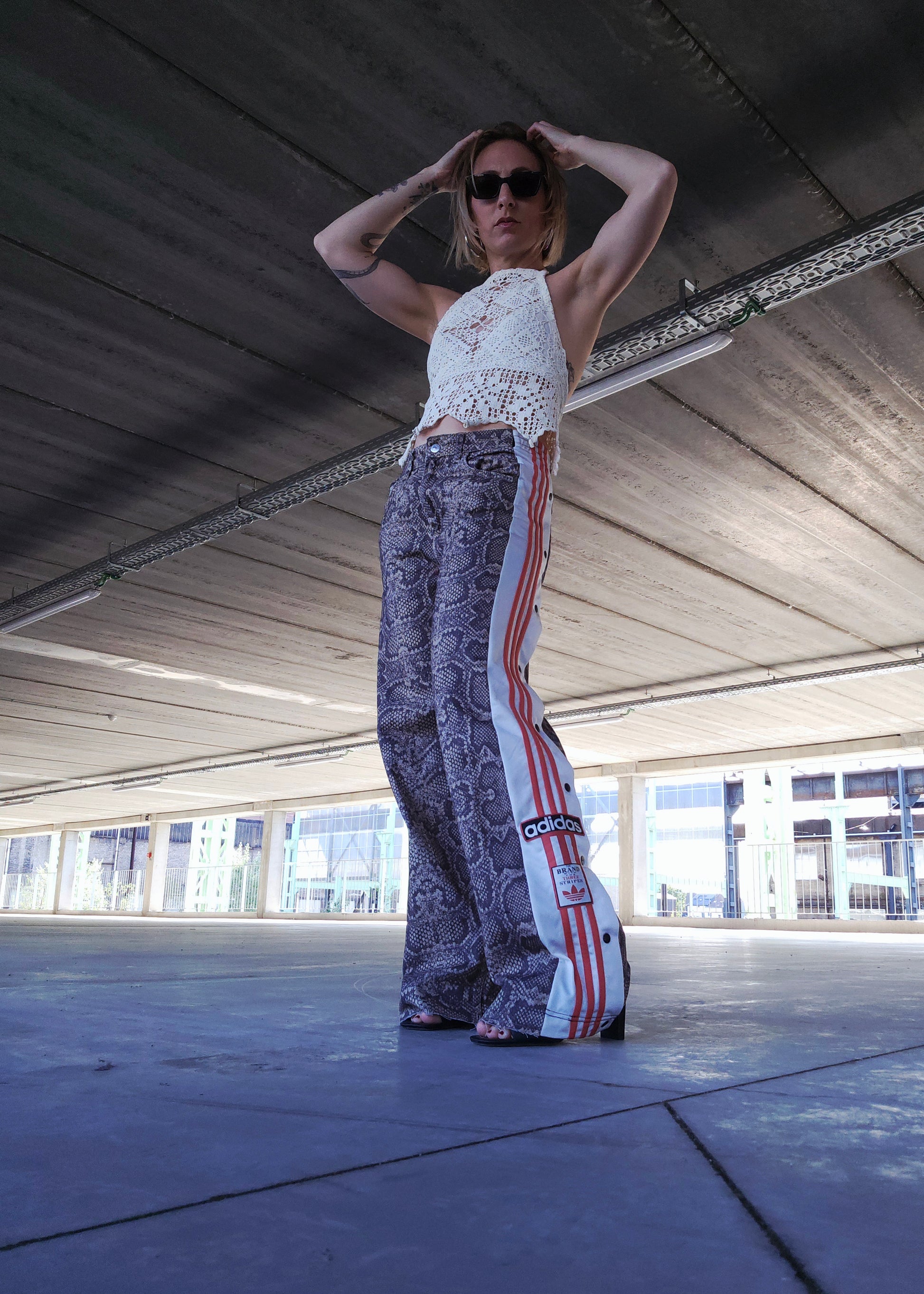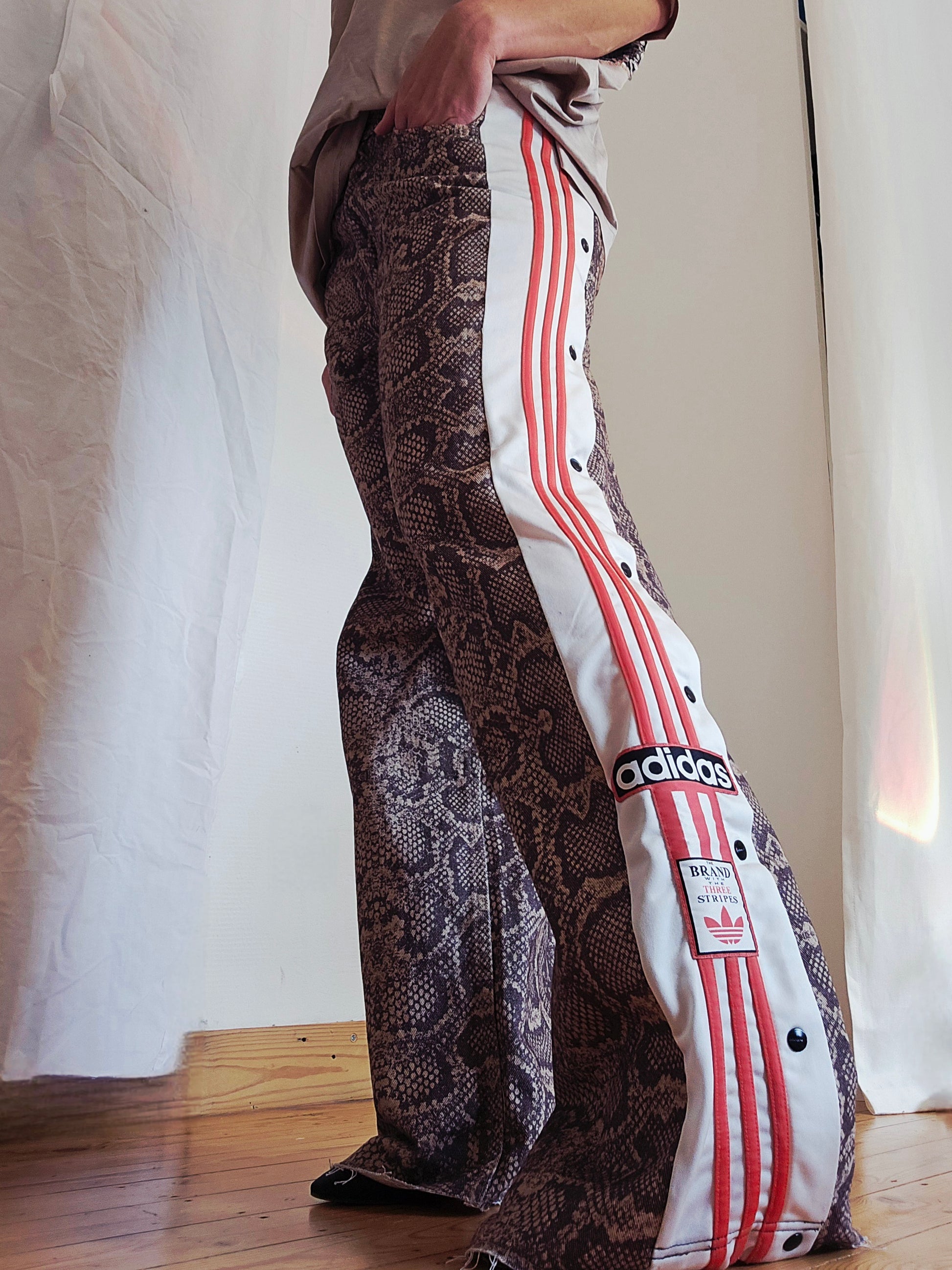 Du confort et un style unique grâce à ce jeans à motif serpent upgradé avec des bandes à pressions d'une pièce emblématique des années 90. Alors, allez-vous craquer ?